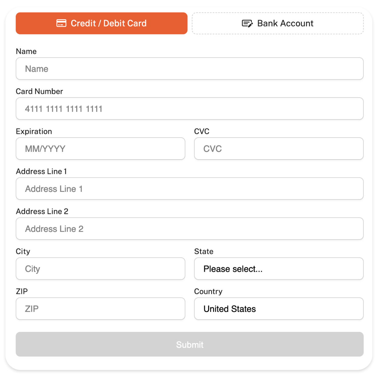 Another option available to you is using your Bank Account (via ACH) to pay your fees! Paying via bank account is quite simple. After you select the Bank Account option, you will be prompted to enter the following details: