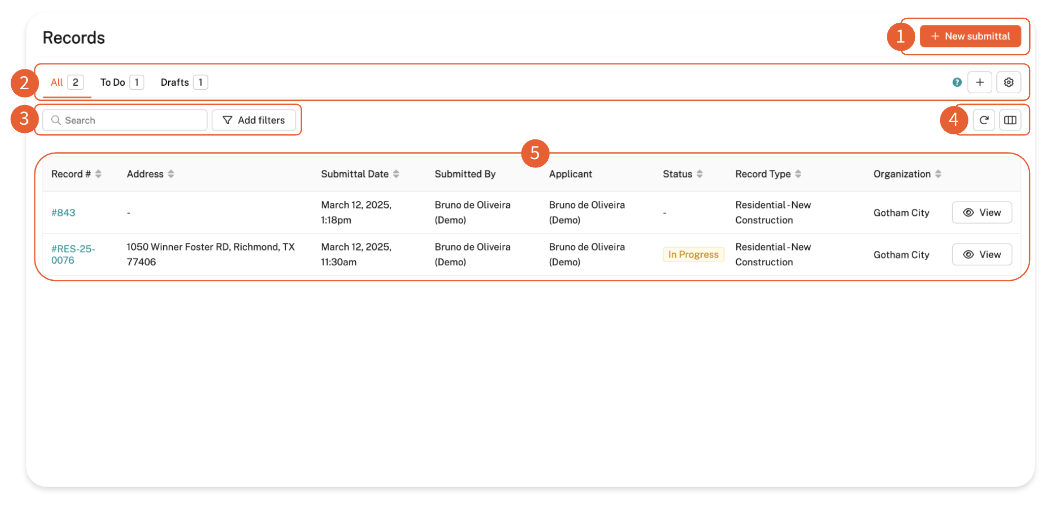 My Projects: This is where you’ll find all your projects, including current and past projects, drafts, and the option to submit a new application to your jurisdiction.