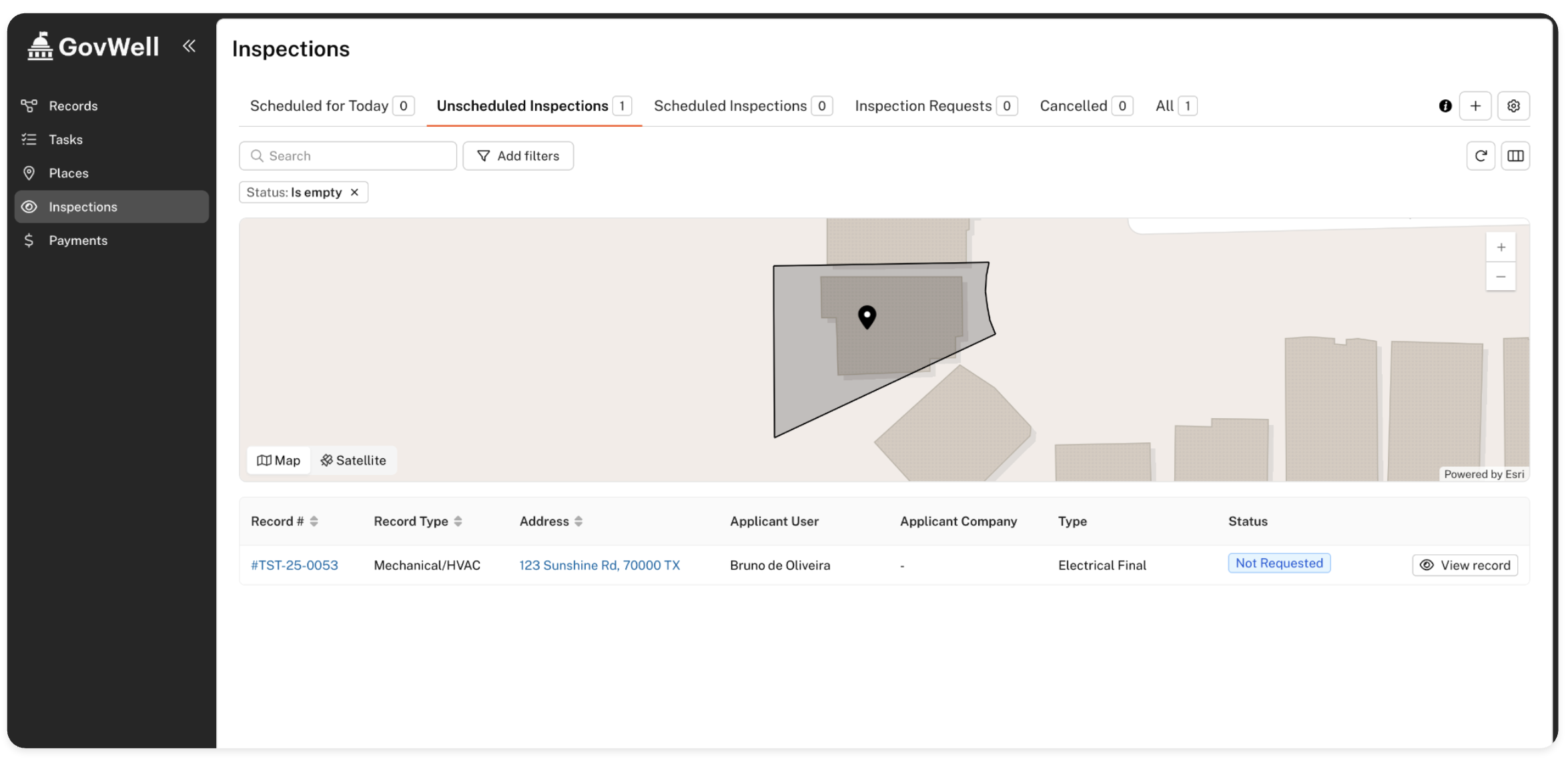 All inspections linked to your applications are displayed on this page. The 'Inspections' view works similarly to the 'My Projects' view, showing the status and details of inspections that must be passed for your applications to move forward.