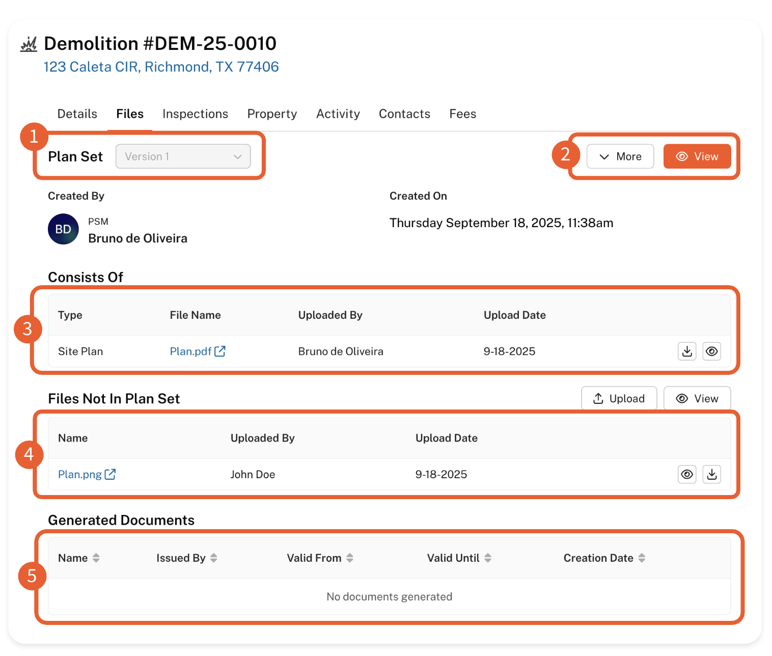 Consists Of (Plan Files): These are the files that are part of your Plan Set and are subject to review.