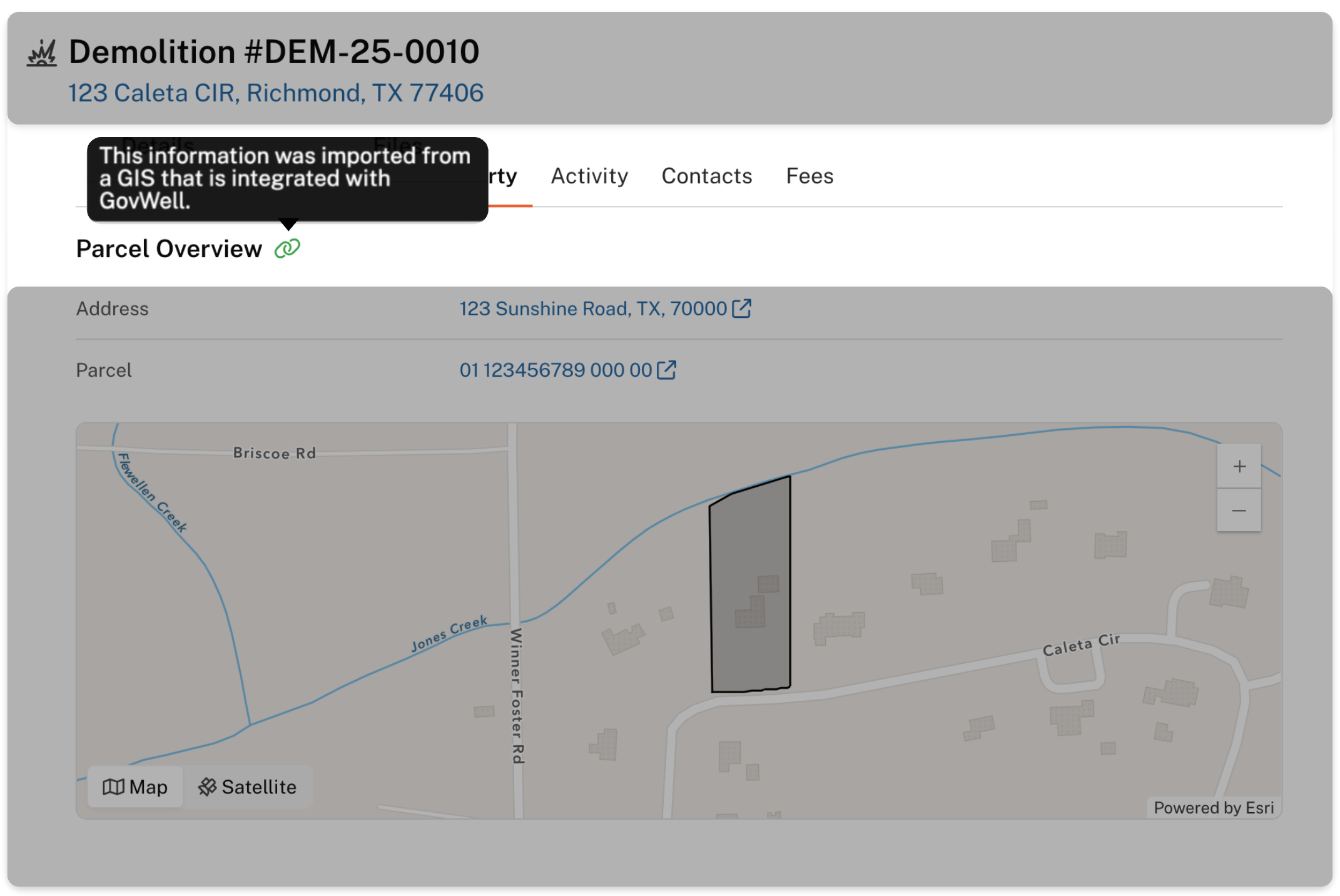 If your jurisdiction has integrated its Geographical Information System (GIS) with the GovWell database, GovWell will automatically link existing addresses from the GIS system to your application!