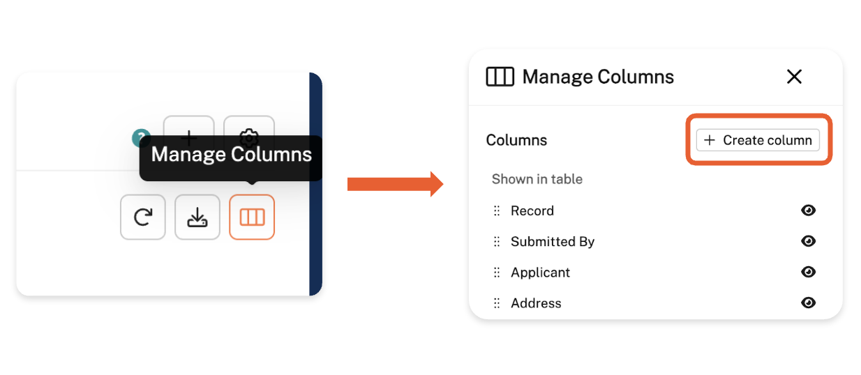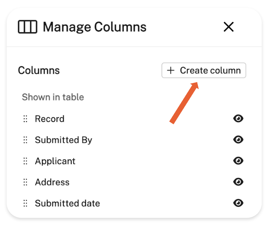 A very useful feature is the ability to add custom columns. To add a custom column, click 'Create Column' in the Manage Column menu.