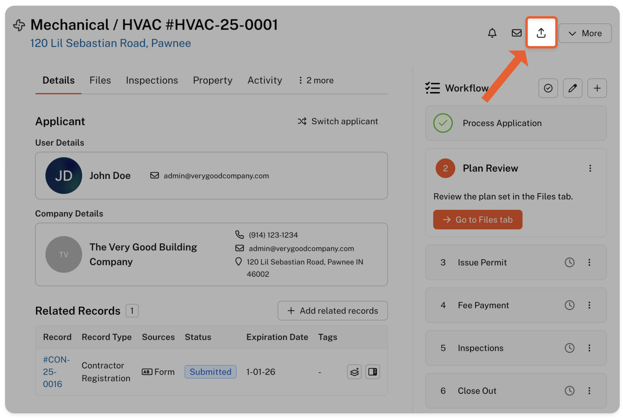 You can easily share an application with an existing GovWell user or invite an external collaborator by clicking the 'Share' button at the top right corner of the application page: