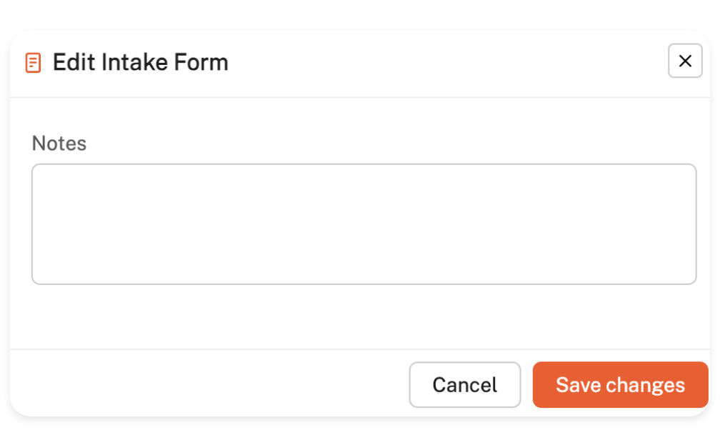 Intake forms are jurisdiction specific forms that allow you to add notes and other information depending on how the form is configured. You can edit the intake form using this option.