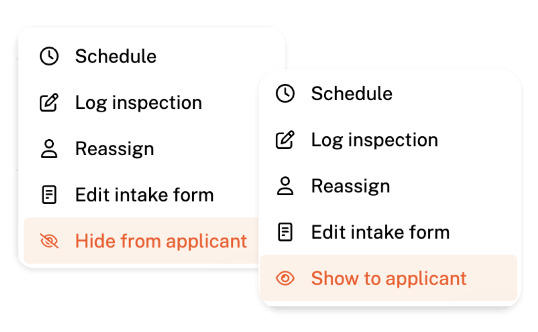 This option allows you to make the inspection visible or hidden to the applicant. Use this feature to control which inspections the applicant can view or request at any given time.