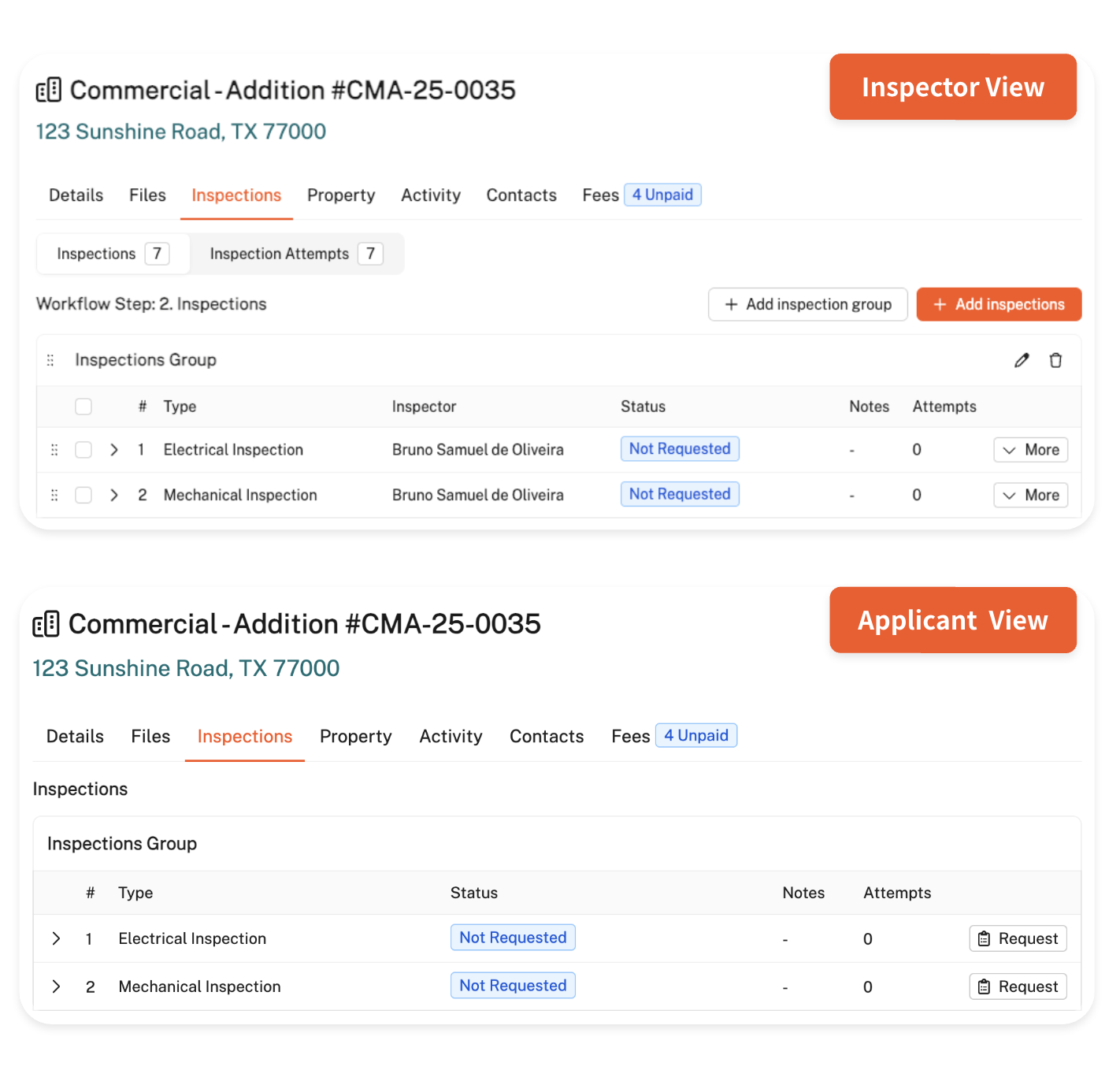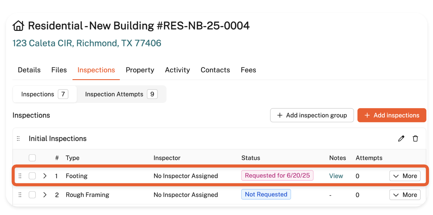 In most cases, applicants are allowed to request inspections rather than schedule them directly. Requesting an inspection is pretty straightforward for applicants!