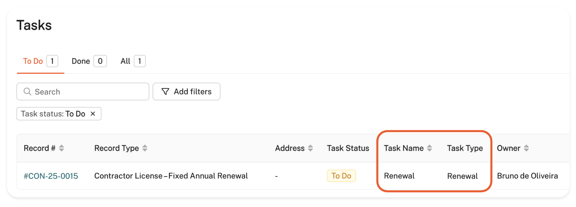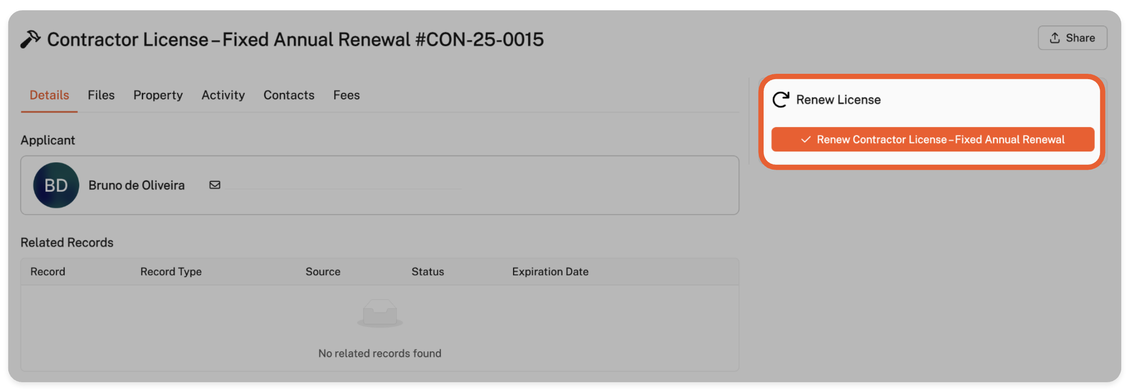 In your registration record, you’ll see a new task on the right side of the screen prompting you to start the license renewal. Click on the task to begin the renewal process.