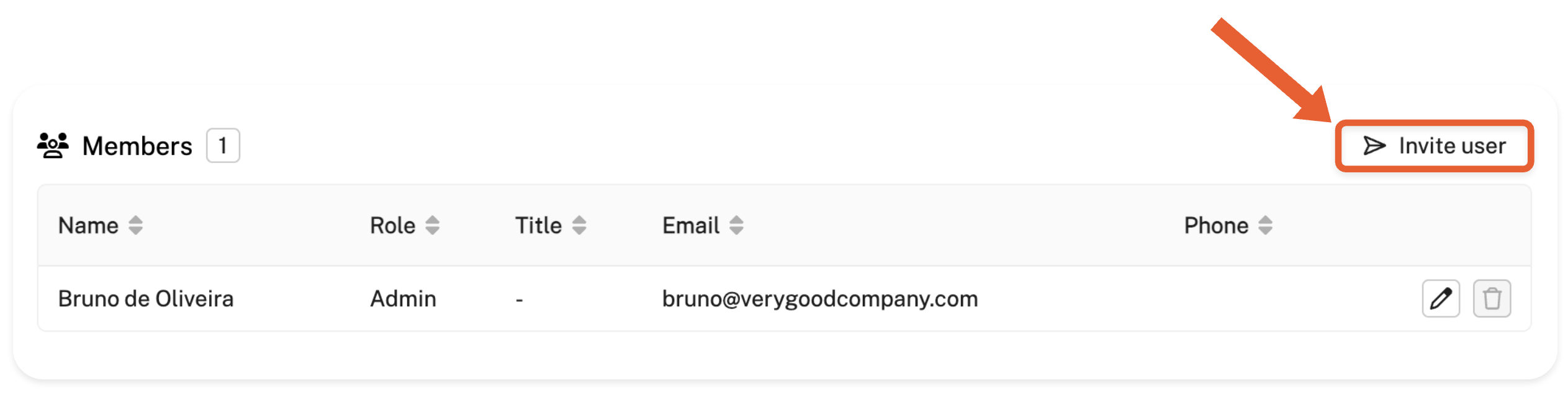 To invite a user to your company, look for the 'Invite user' button on the right side
