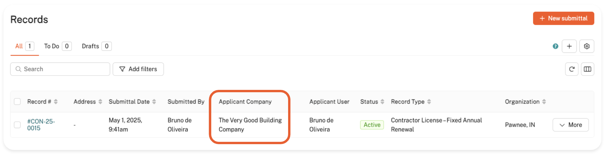 Within your 'Records' page, look for the 'Applicant Company' column - any applications assigned to the companies you're a team member of will be present in this page.