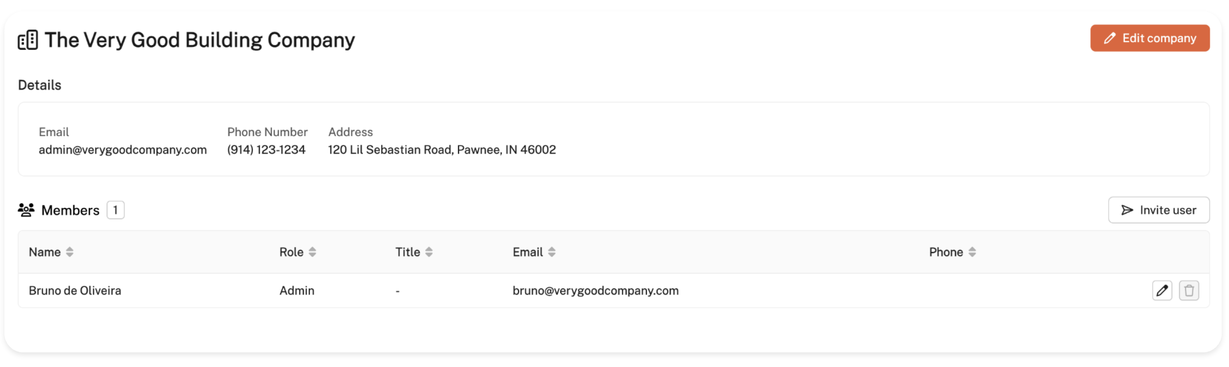 Welcome to your company dashboard! This is where you can manage your company details and who has access to it.