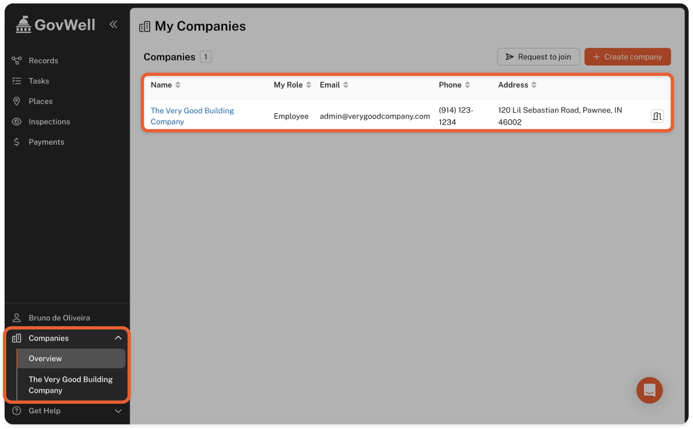 Head to the ‘Companies’ link in the bottom-left corner of your GovWell dashboard.