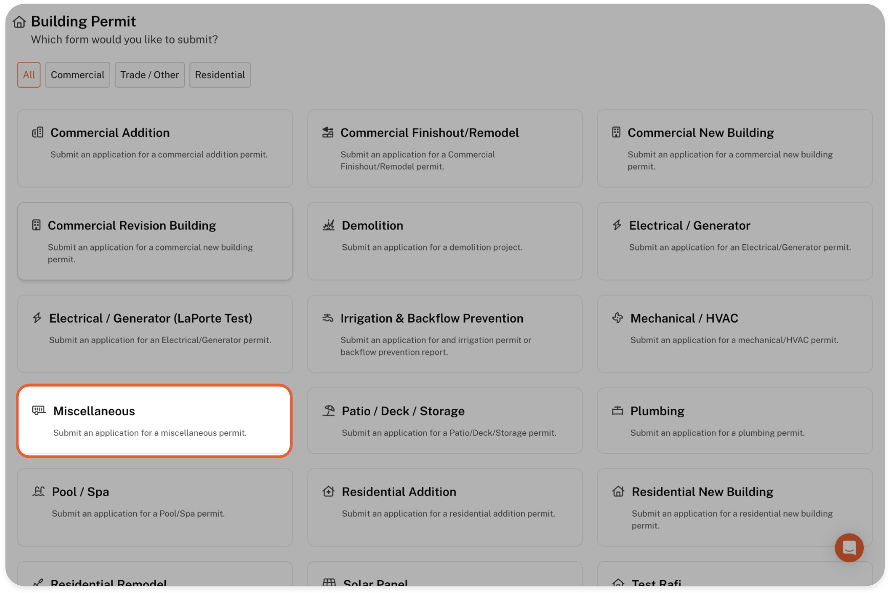 In this example we're going to select the 'Miscellaneous' application type.