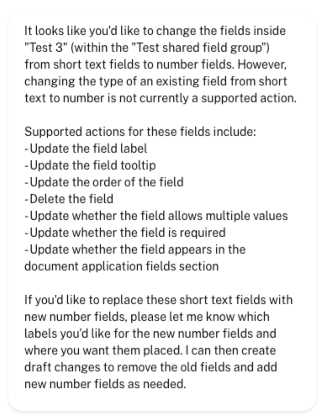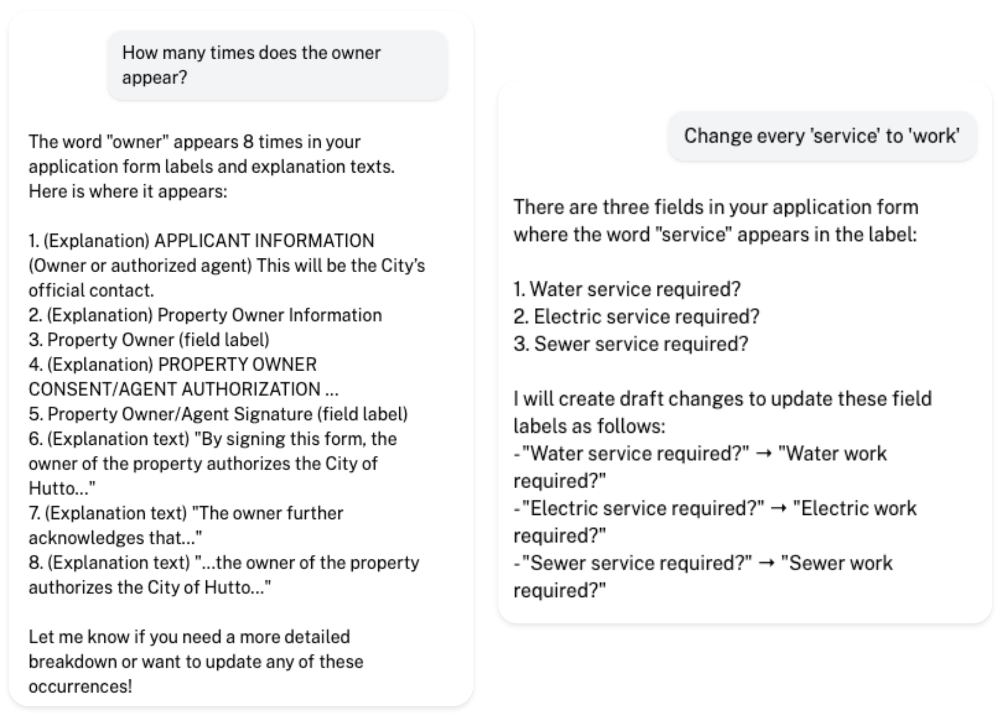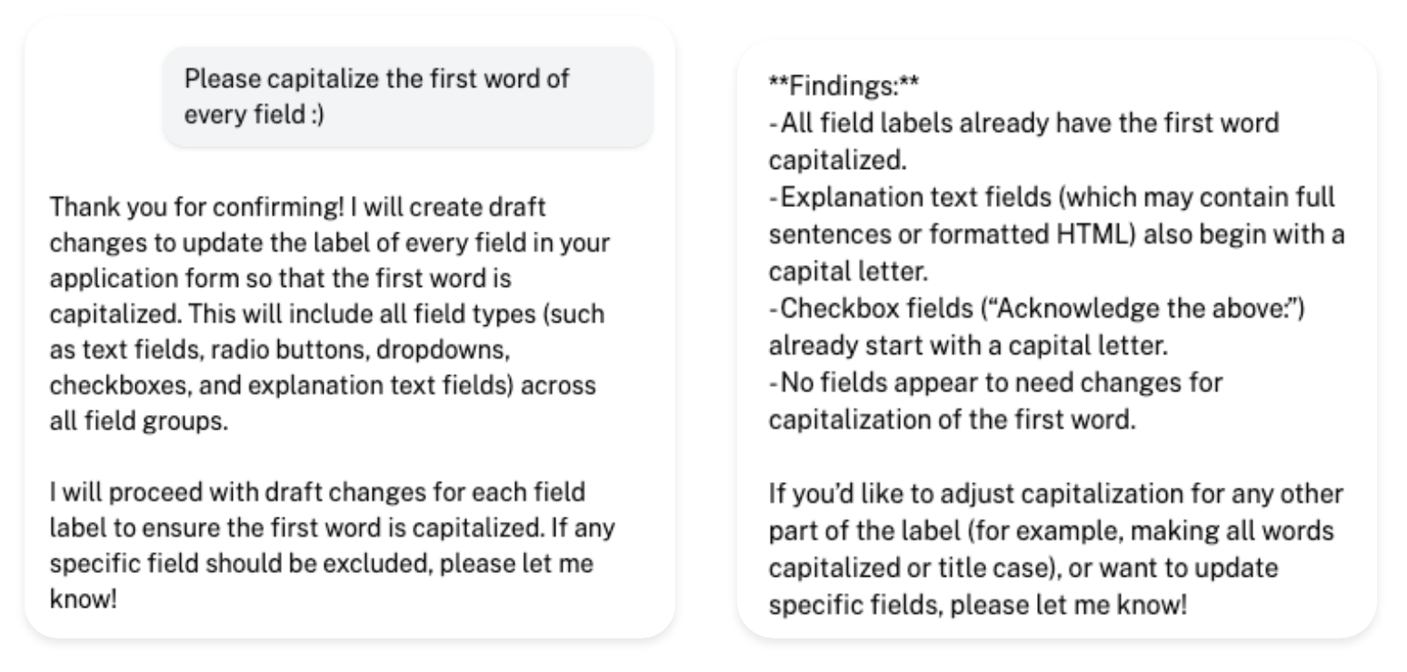 With this language based approach, there are a multitude of possibilities to explore! The assistant is only deployed to edit application forms currently, meaning it's not yet available to update the below just yet: