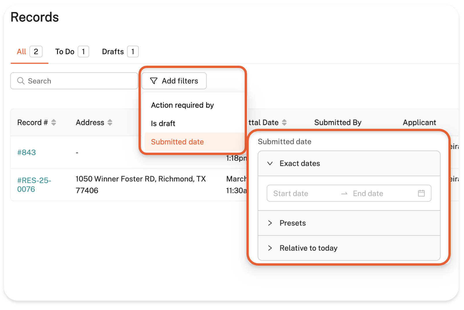 Here, you can easily search for more information within your applications and filter results based on predetermined criteria. To filter your results, simply click the 'Add Filters' button and select the filters you'd like to apply. You can also save these filters to keep them in your current view for future visits — just click the 'Save changes to (...)' button on the right side of your page after applying a filter!