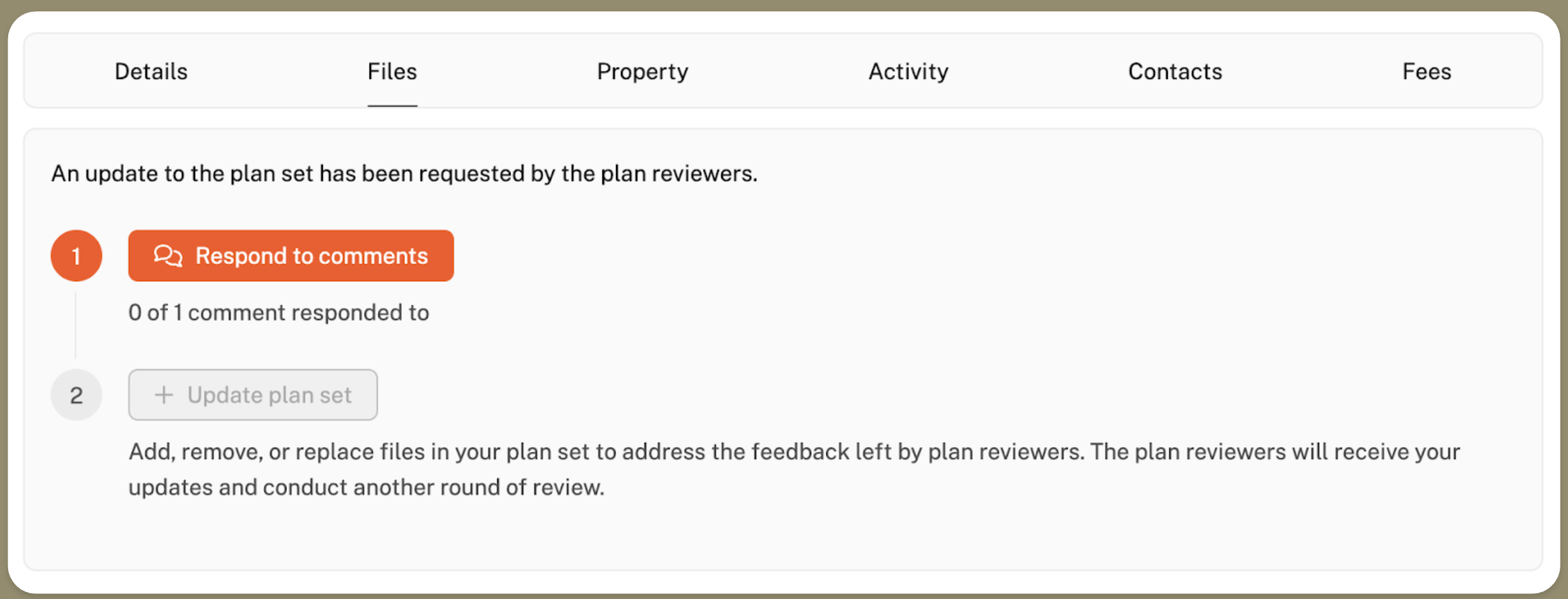You will see a notice in your 'Files' section whenever an update to your Plan Set is requested. Be sure to respond to them in order to advance to the next steps!