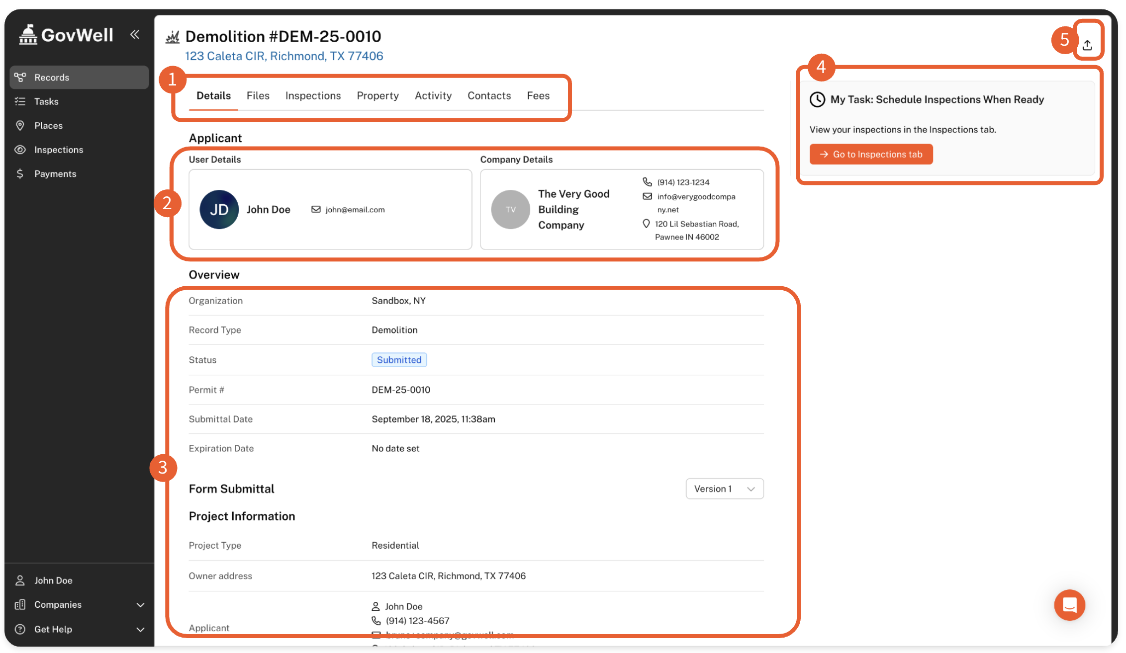 This page is very useful to keep track of the timeline of events on your application! You can use the Activity tab to understand where your application is currently at. For further assistance and clarification on the activity, such as ongoing plan reviews, please contact the relevant department through the information outlined on their respective GovWell portal.
