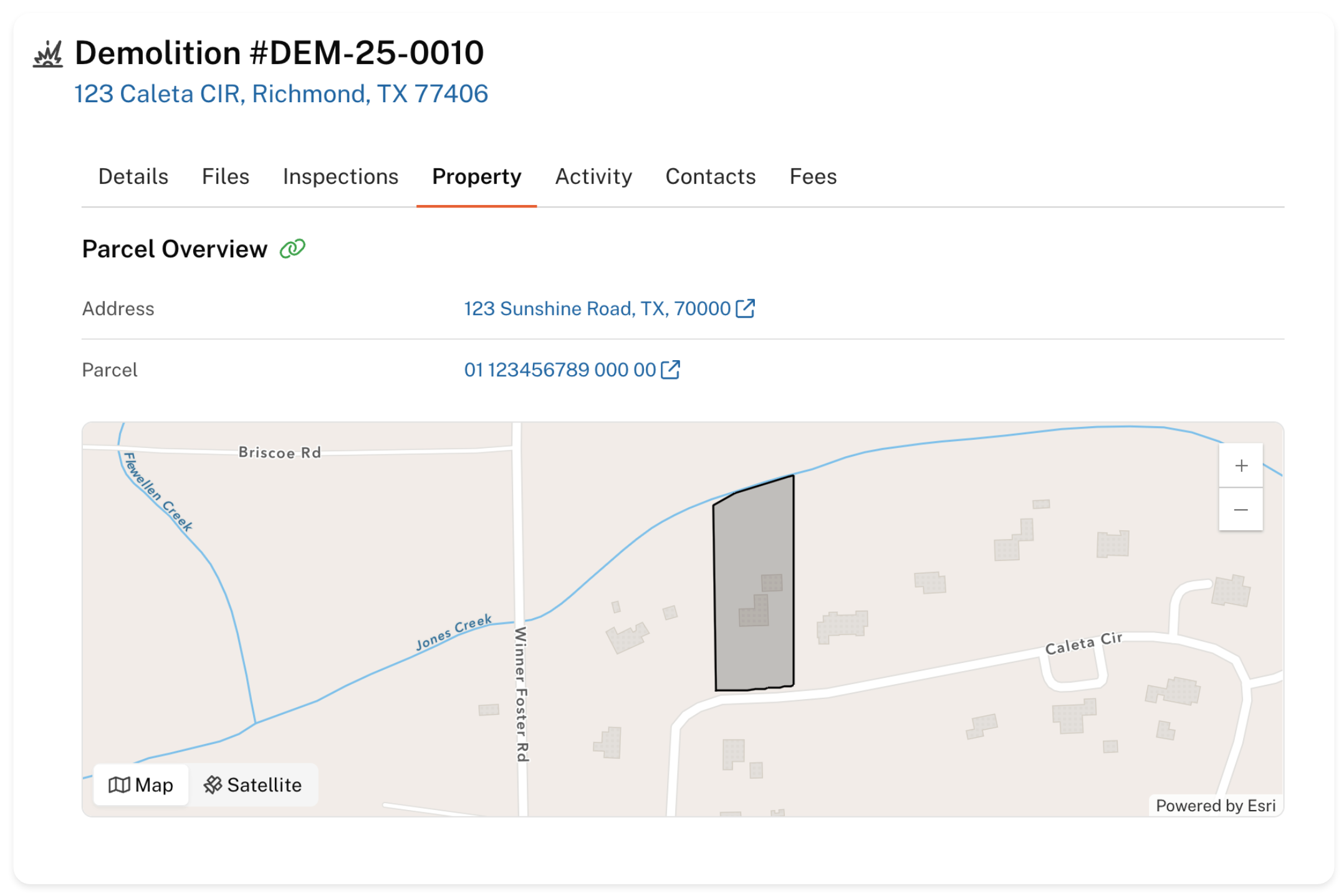 The Property page displays the information related to the address in the application.