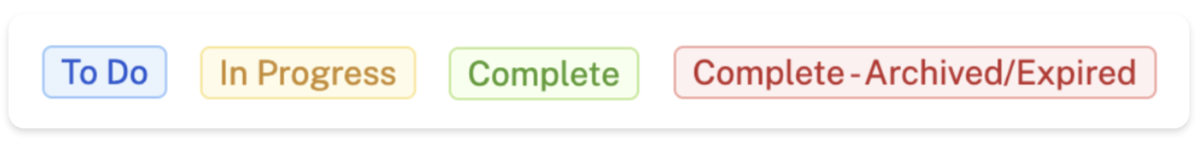 Red – No further action required: The application has either been archived or expired, meaning no further steps are needed.