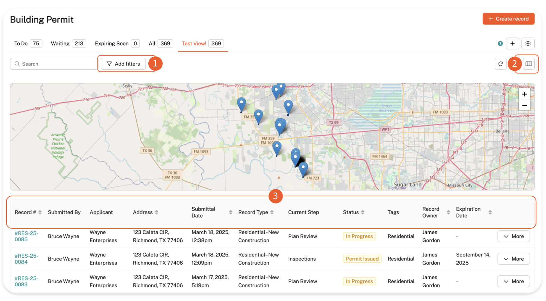 Lastly, we want to ensure that only 'Residential - New Addition' applications are displayed. To do this, we simply need to filter the results by Record Type using the 'Add Filters' button: