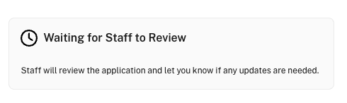 If you haven’t received this notification yet, it’s likely that the review process is still ongoing. To confirm, check the 'Files' tab on your application page to see if the Plan Review process is still in progress - if you see the below message on the right side of your application page (or all the way at the bottom on mobile), it means the review is still underway.