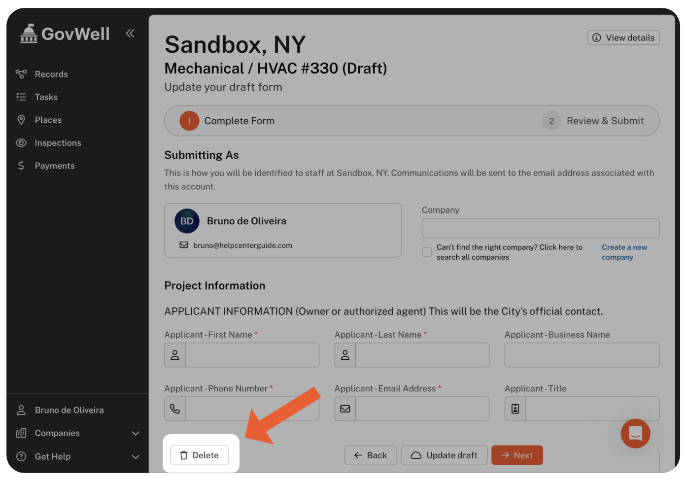 Open the Draft Application: Navigate to the draft you wish to delete.