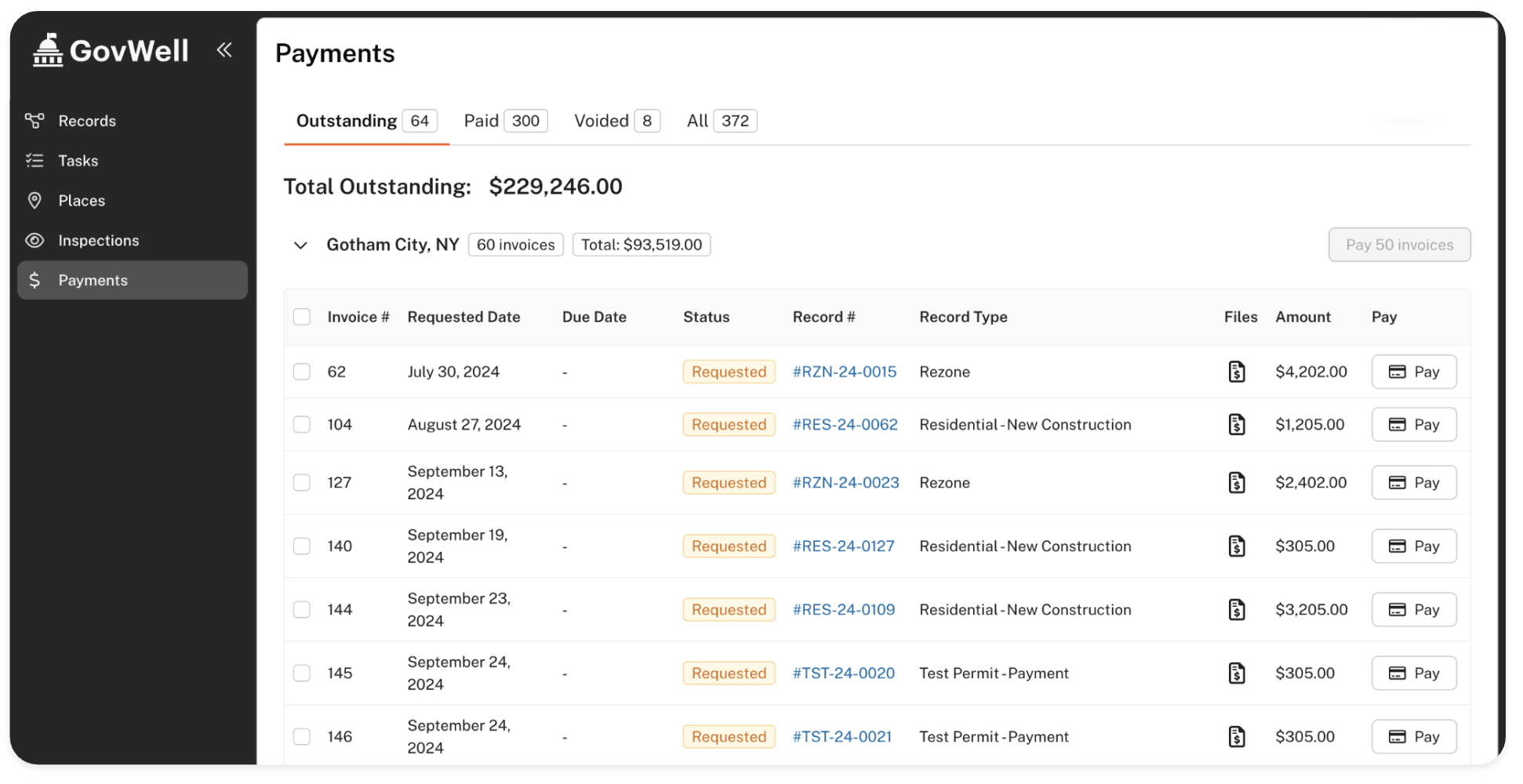 It is super easy to track and make multiple payments using GovWell! With our new Payments Dashboard feature, you can now track and pay multiple fees at the same time, all in one convenient location.