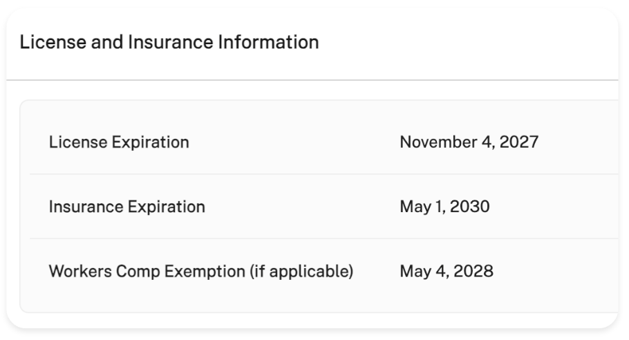 Every contractor registration has an expiration date - whether it's the registration itself, your policy, or your insurance that needs to be renewed. GovWell helps your jurisdiction track each date and notifies the relevant parties when it's time to begin the renewal process. In your registration page, you can find the expiration date next to the 'Submittal Date' field.