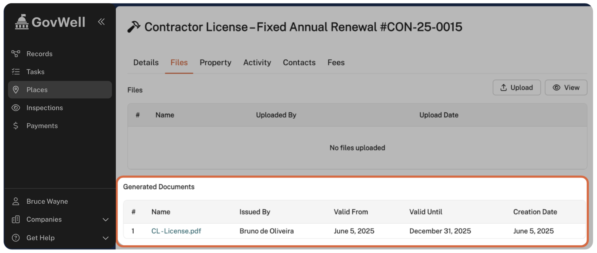 Once you paid your fee, jurisdiction staff will issue and email you your new license! You can also find it under the 'Files' tab of your application page.