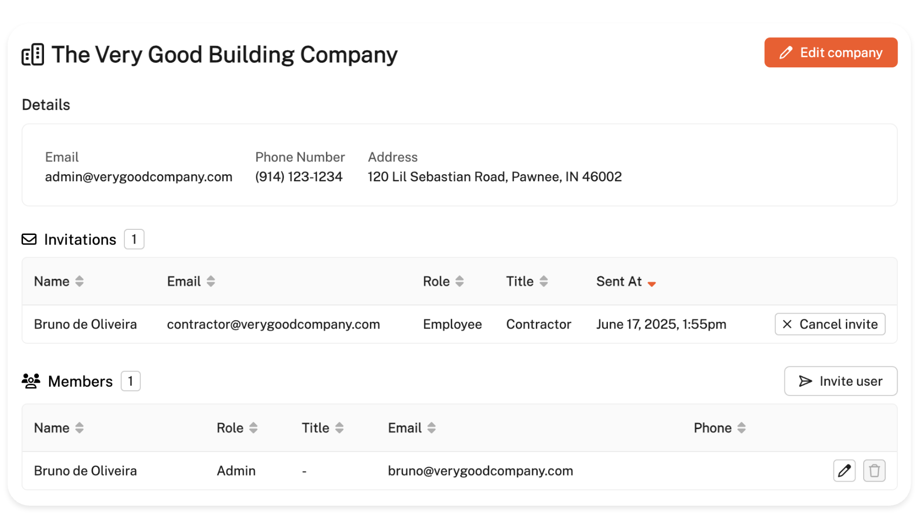 Use the ‘Edit company’ button (top-right) to update company information at any time.