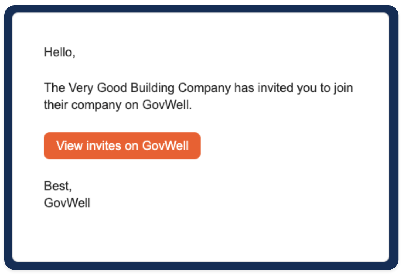 If another user invites you to join their company profile in GovWell, we will notify you via email