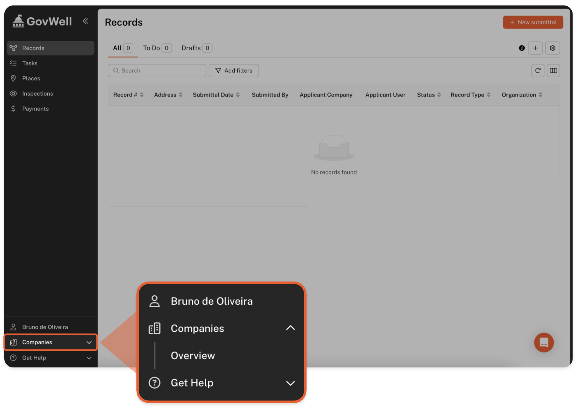 Head to the ‘Companies’ link in the bottom-left corner of your GovWell dashboard.