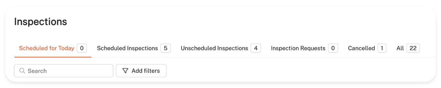 Once you're on the Inspections page, you'll see a few tabs at the top.