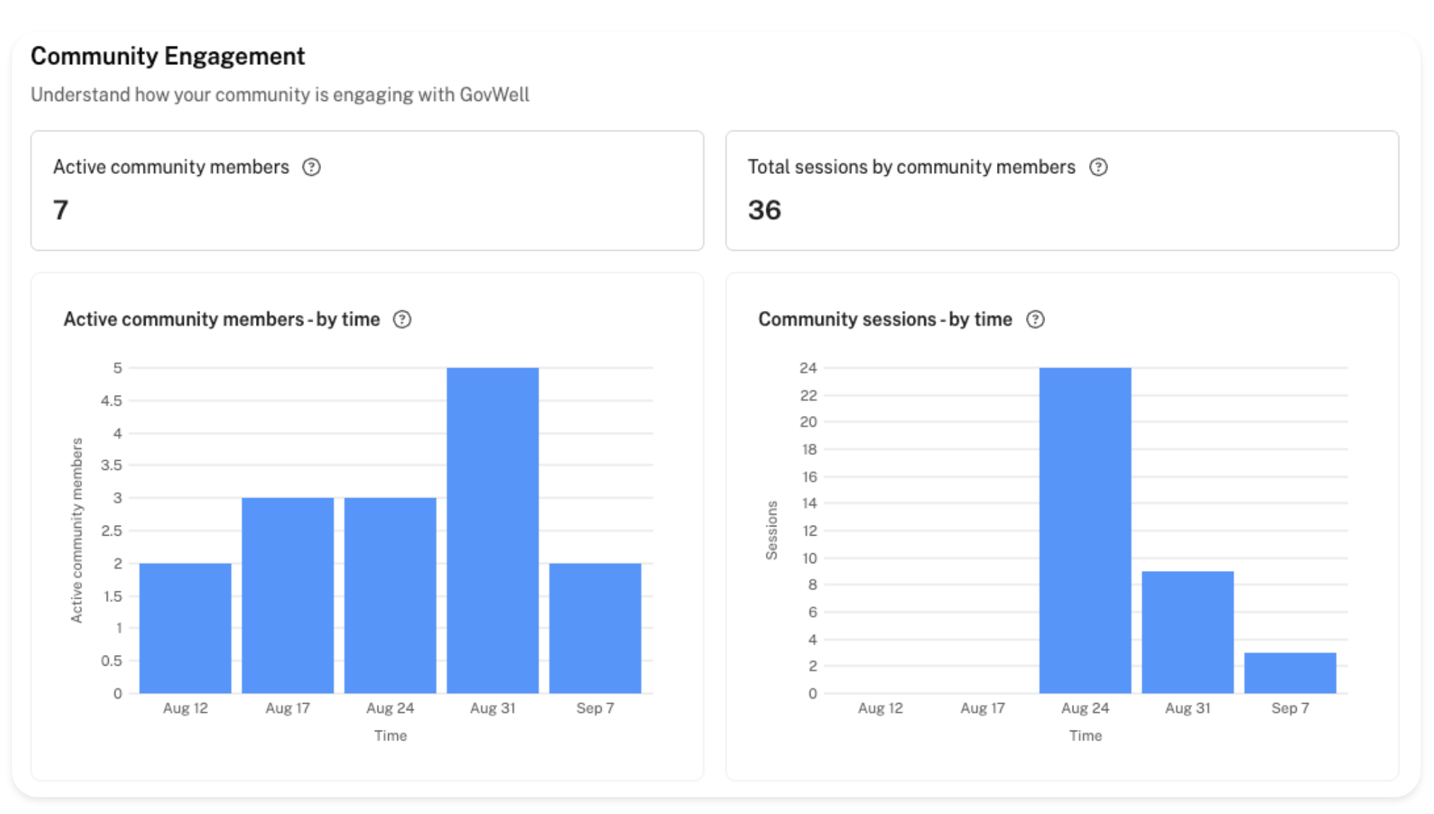 Keep track of your community’s engagement with this view – see how many members have visited your portal and how many sessions they’ve logged within the selected date range.
