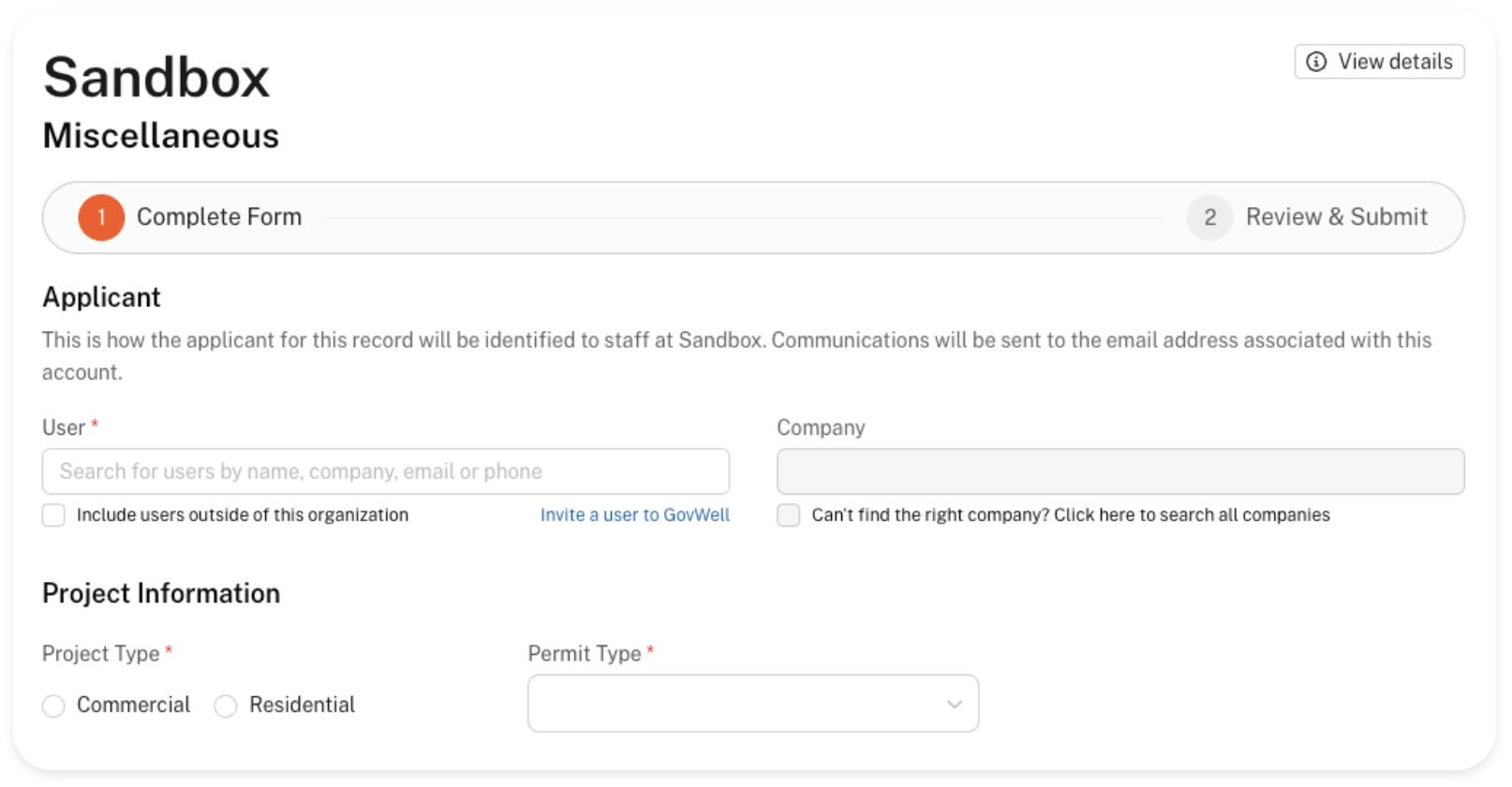 In this example we're going to select the 'Miscellaneous' application type.